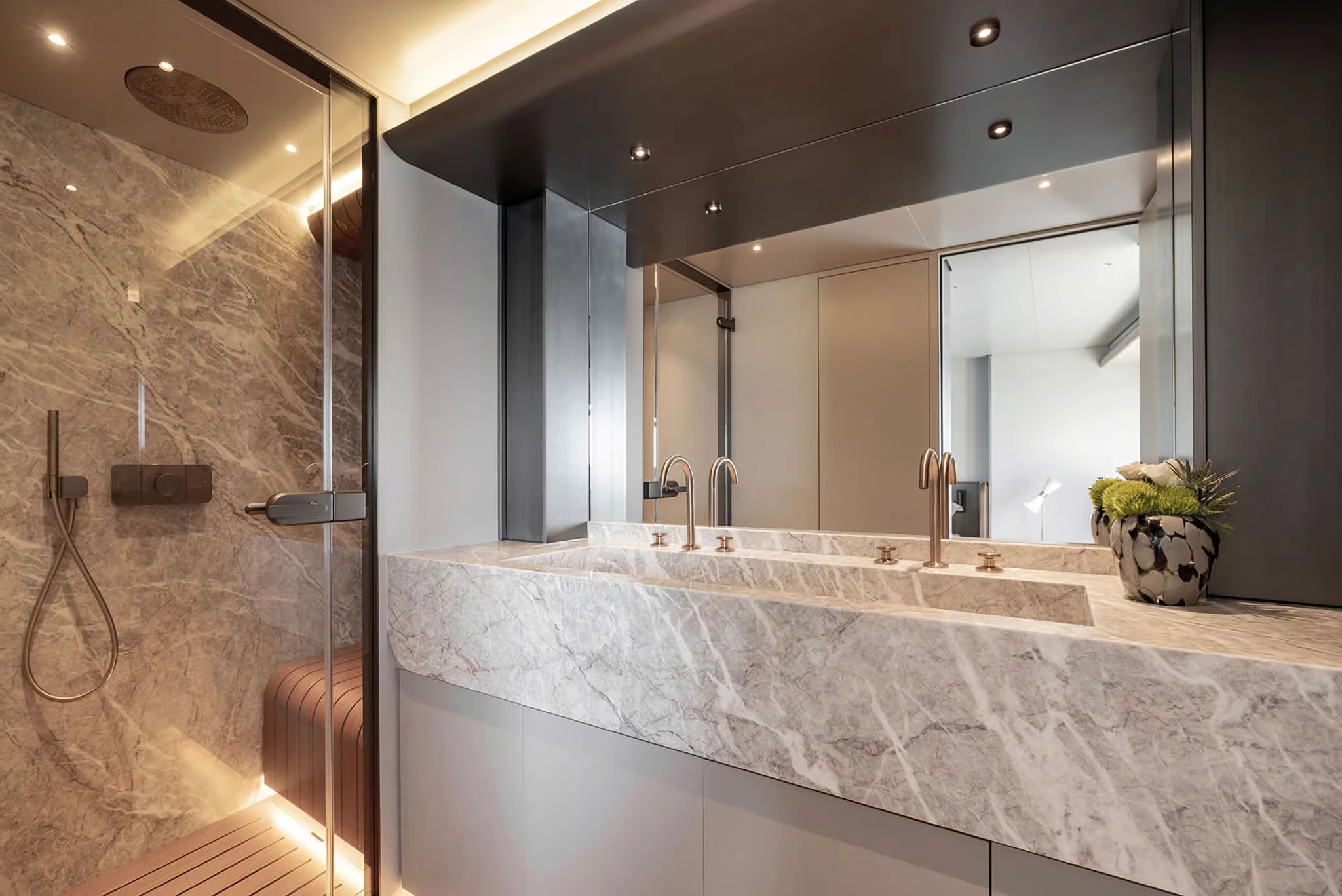 | Master Cabin | Full-beam owner’s suite (main-deck / layout dependent) with generous volume and amenities |