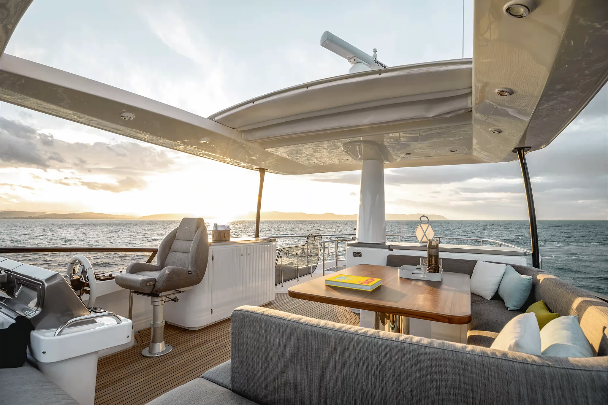 | Aft Cockpit & Aft Deck | Generous aft dining/seating area; extended sofa; optional folding backrest / “infinity terrace” style configurations on some builds |