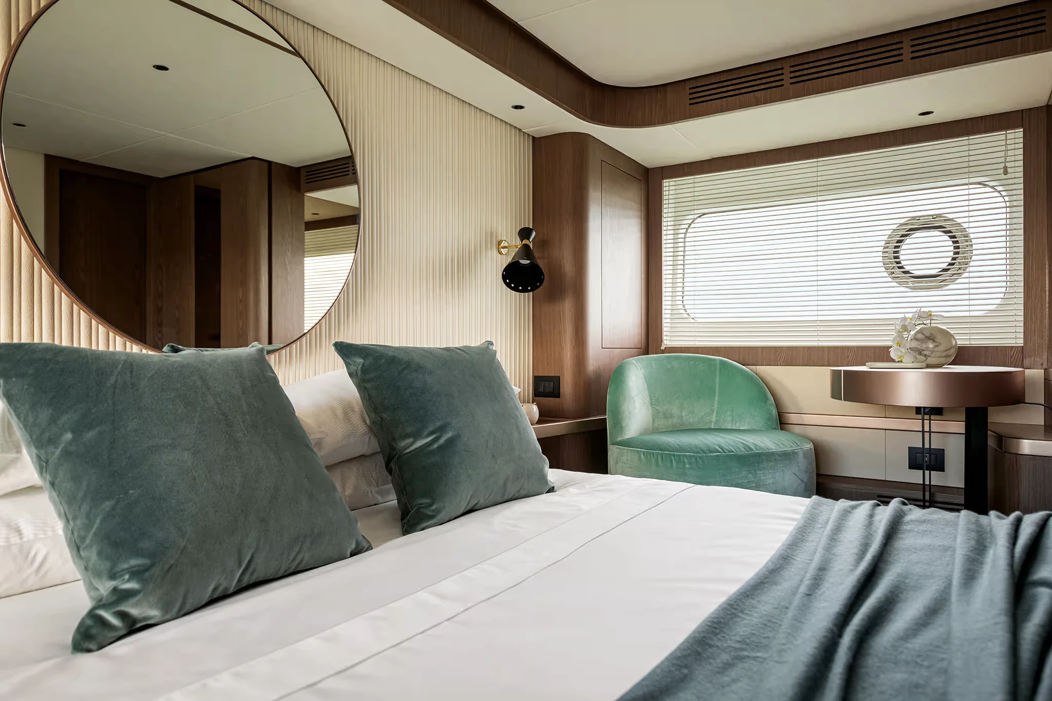 Its semi-displacement Dual Mode hull is engineered to perform efficiently across a wide range of speeds, from economical passages at nine knots to faster cruising in the high teens. This flexibility allows the yacht to adapt to different sea conditions and cruising plans, whether crossing open stretches of water or enjoying a coastal voyage.