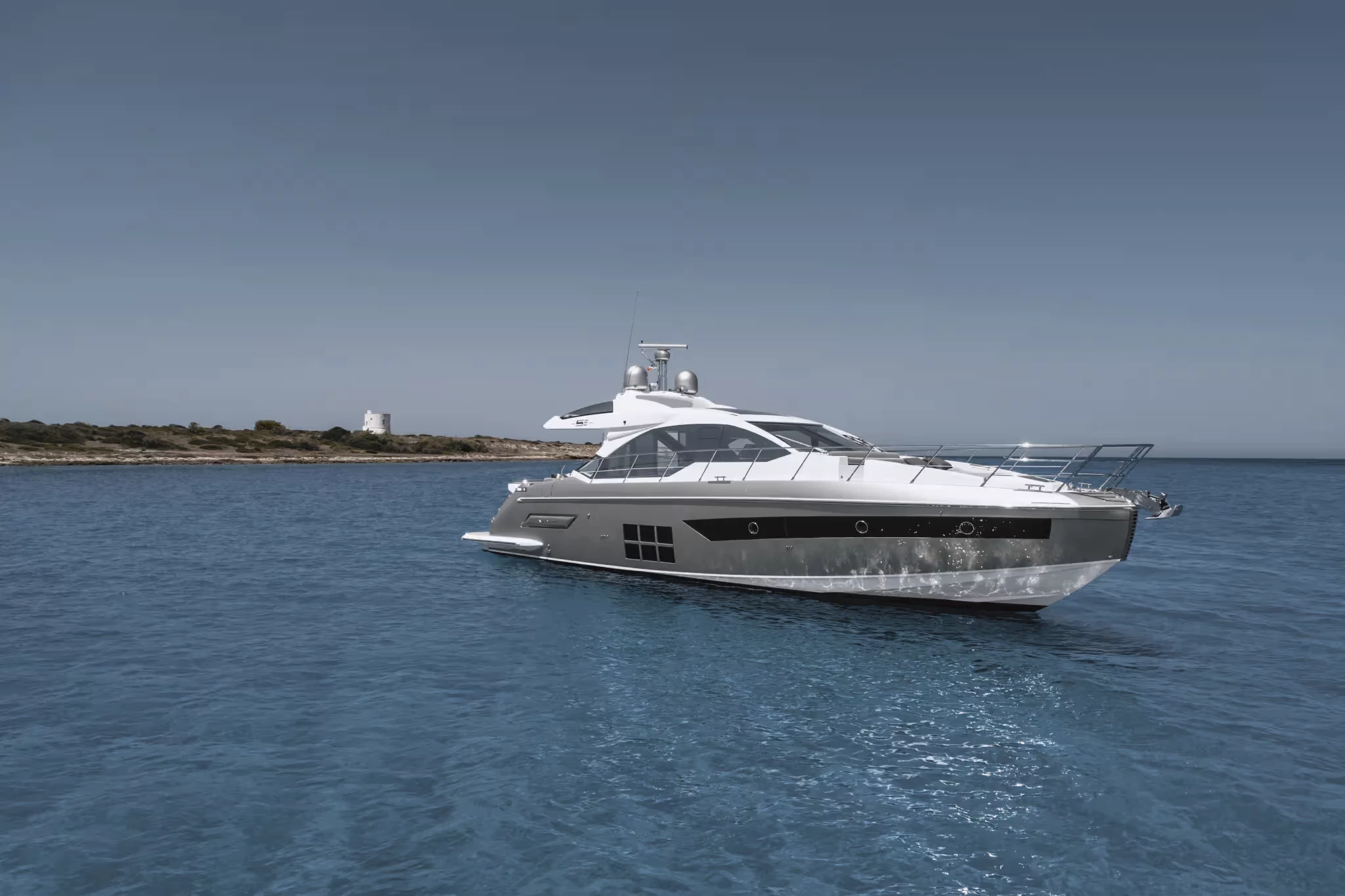 Operacionalmente, El S6 está diseñado para un fácil manejo.. El control mediante palanca de mando simplifica el atraque y las maniobras a baja velocidad.; El sistema triple IPS combinado con la construcción liviana mejora la eficiencia del combustible y reduce la vibración.. El tanqueaje apoya la navegación extendida, con más 2,600 litros de combustible y casi 600 litros de agua dulce, Ofrece una gama adecuada tanto para cruceros costeros como para saltos más largos entre puertos..